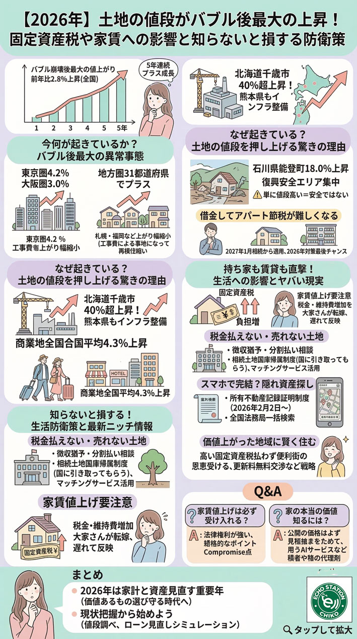 ねえ、最近のニュースで「土地の値段がすごく上がっている」って聞いたことないかな?