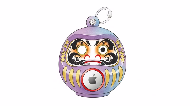 初売りのもう一つの目玉が、日本限定のデザインが施されたAirTagです。2026年は、可愛らしいだるまが刻印された特別仕様になっています。