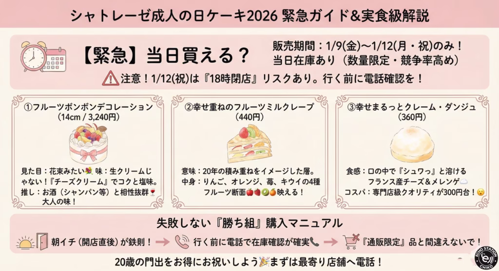 【緊急確認】2026年シャトレーゼ「成人の日ケーキ」は当日買える?