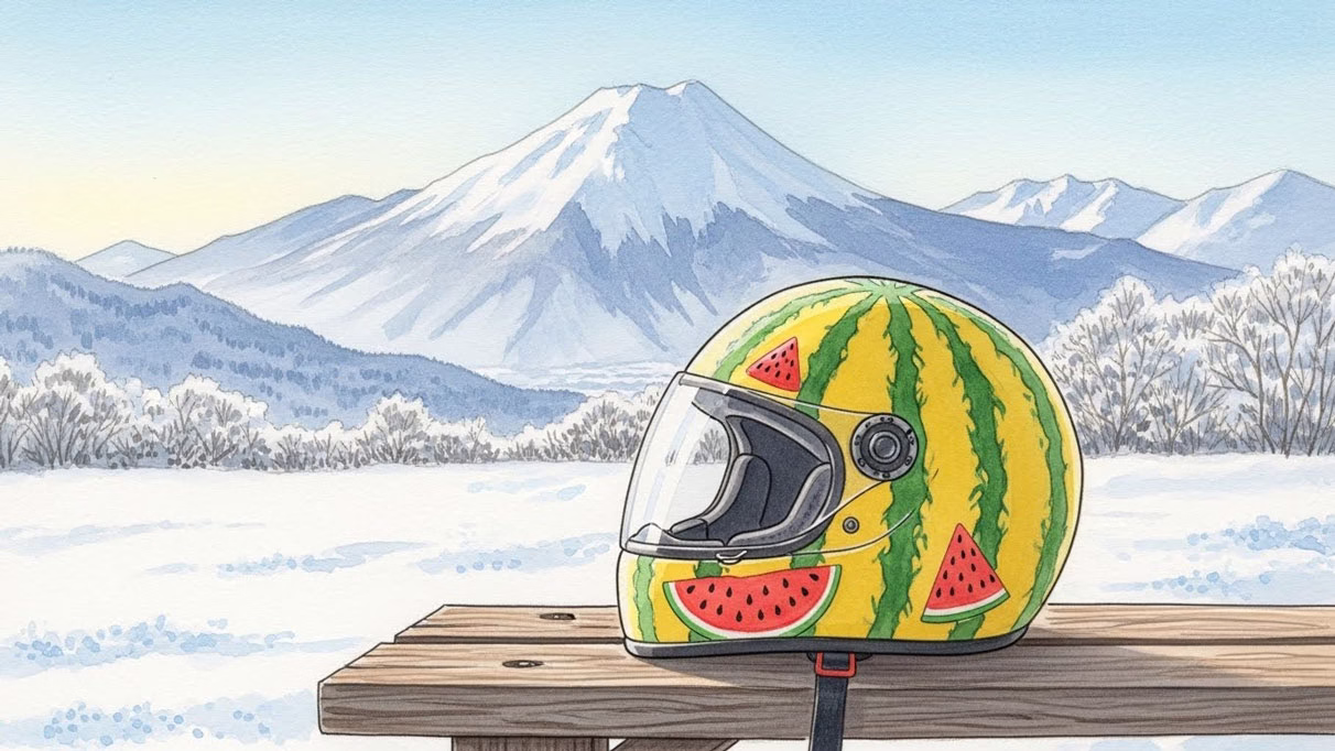 あのスイカヘルメットの世界観、見れば見るほどクセになりますよね。