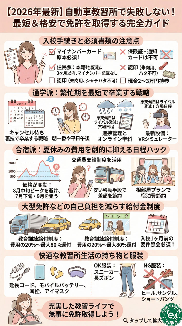 教習所をスムーズに卒業するためには、書類の準備から日程の選び方まで、事前の情報収集がとても大切です。