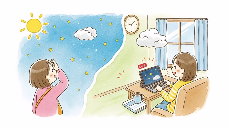 これ、実はすごく贅沢な楽しみ方なんです。高感度カメラは肉眼では見えないような小さな流星まで捉えてくれるので、数え切れないほどの星を見ることができます。「あ、今流れた!」とチャット欄で全国の人たちと盛り上がるのも、現代ならではの流星群の楽しみ方ですよ。