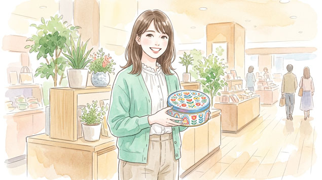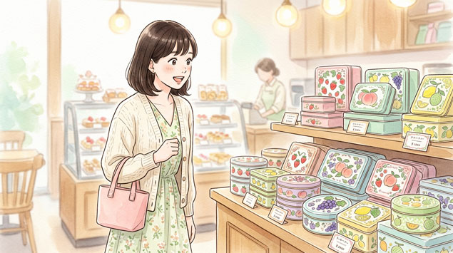 缶のパッケージデザインが女性受け抜群で、中を食べ終わっても缶を小物入れや飾りとして使える点も喜ばれるポイント。帰省のお土産として持っていくと「センスいい!」と言われやすい一品です。