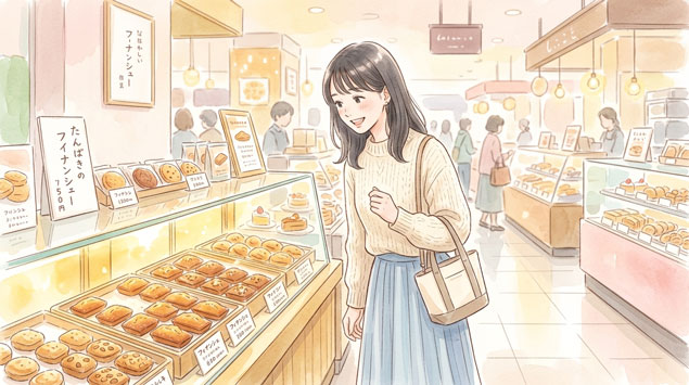 外側がカリッとしていて、中はしっとり、焦がしバターの香りが濃厚、という三拍子揃った逸品です。焼き上がると店内にベルの音が響いてお知らせしてくれるというエピソードも有名で、香りと音に引き寄せられてついつい並んでしまう、という声もSNSでよく見かけます。