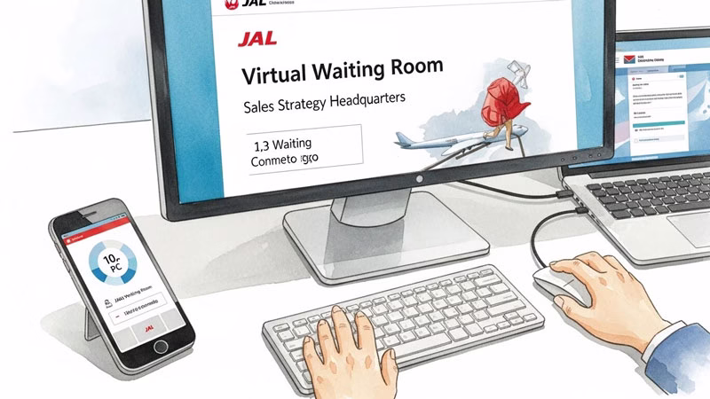 以前、2023年のセールでは、アクセスが集中しすぎてシステムがダウンし、販売中止になってしまったことがありました。この教訓から、JALさんは「仮想待合室」という仕組みを本格的に導入したんです。