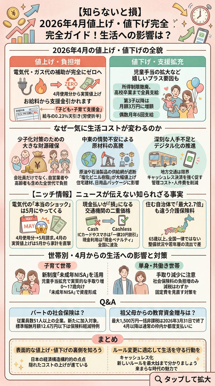 2026年4月は、ただ物の値段が上がるだけじゃなくて、世の中の仕組みが大きく変わるタイミングなの 。