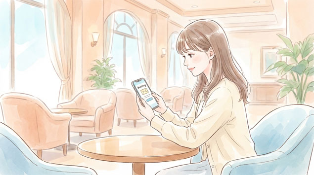 背筋をスッと伸ばして、ホテルの雰囲気を楽しむ余裕を持てば、それだけで素敵な大人の女性としてその場に馴染みます。