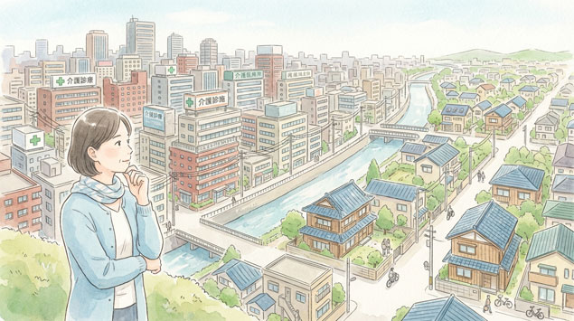 A. 実はそれが今後の大きな問題になると言われているの。低コストな街に元気なお年寄りがどんどん引っ越してくると、数年後にはその街の高齢化が一気に進んでしまうよね。そうすると介護サービスがパンクして、結局は保険料が高騰してしまう「合成の誤謬」という現象が起きるリスクがあるんだ 。だからこそ、早い者勝ちのサバイバルになりつつあるのかもしれないね。