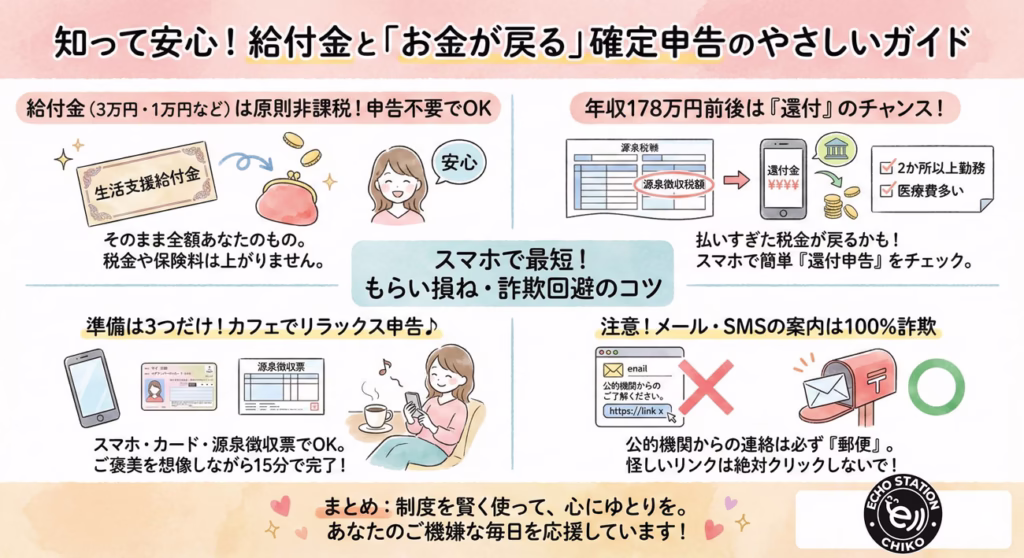 スマホでできる最短手順と、もらい損ね・詐欺を避けるコツをやさしくまとめます。
