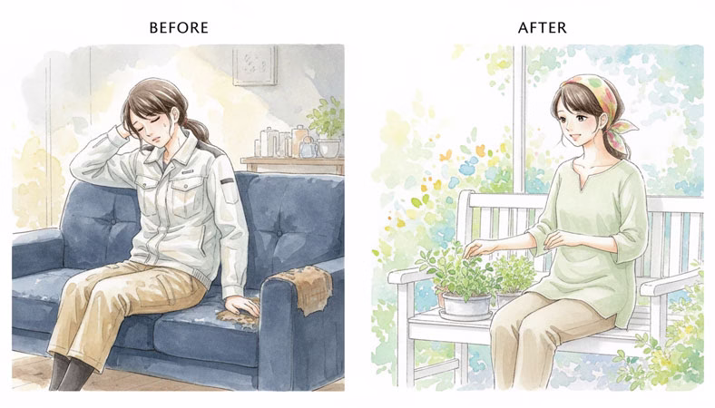 ãæãããã·ã«ãªããã ãã§ãå¬ããã®ã«ãç©ºèª¿äœæ¥æãããããQOLã®å€åã¯ããã ãã«ãšã©ãŸããŸããã