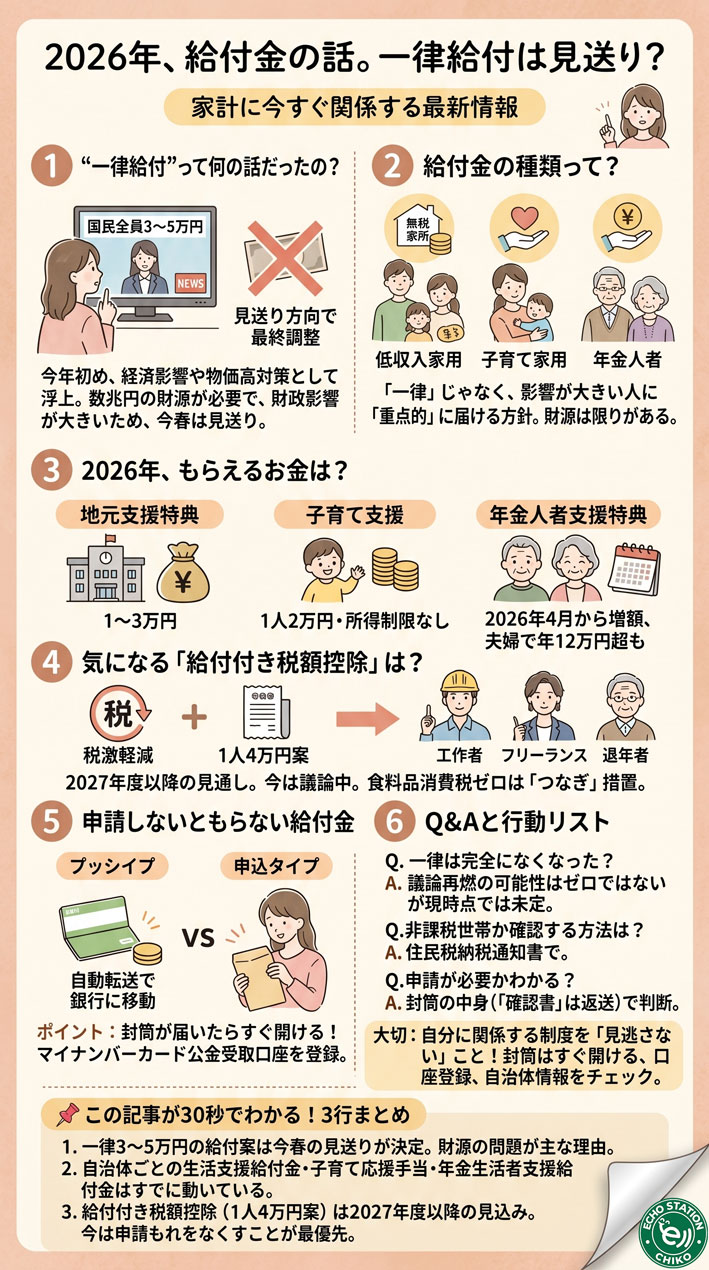 2026年に動いている給付の全体像については、こちらの記事でより詳しくまとめています。