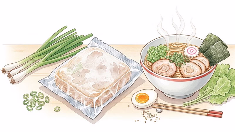 - 具材の豪華さカップ麺の具材はどうしても乾燥した小さなものになりがちですが、冷凍ならチャーシューやメンマも、よりお店に近いサイズ感で入っていることが期待できます。