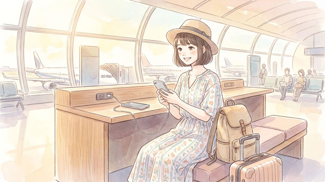 旅行の準備のひとつとして、利用する空港の充電スポット情報を事前にチェックしておきましょう。