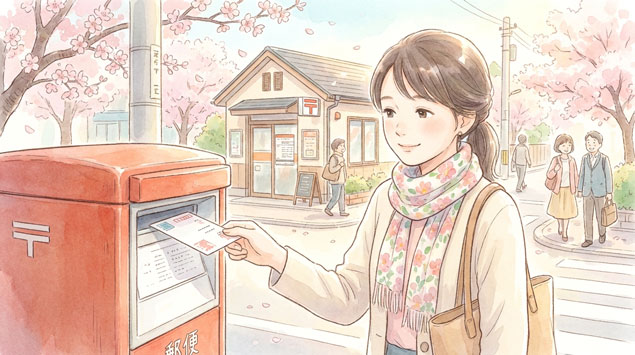 - 切手を貼ってポストに投函する