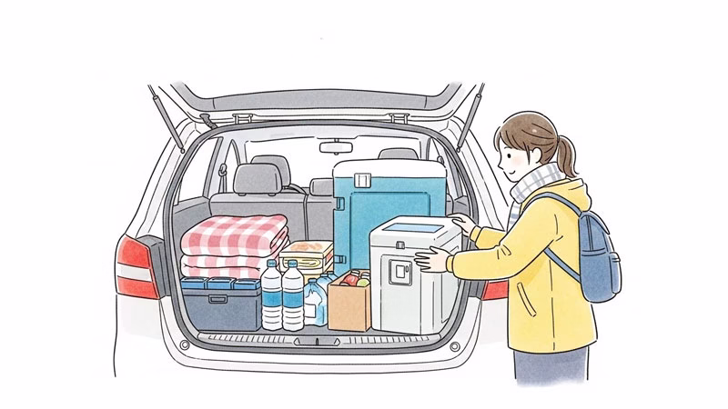 - 簡易トイレ(超重要)渋滞中や立ち往生中、一番困るのがトイレです。家族の人数分×数回分は絶対に用意してください。これがあるだけで心の余裕が全然違います。