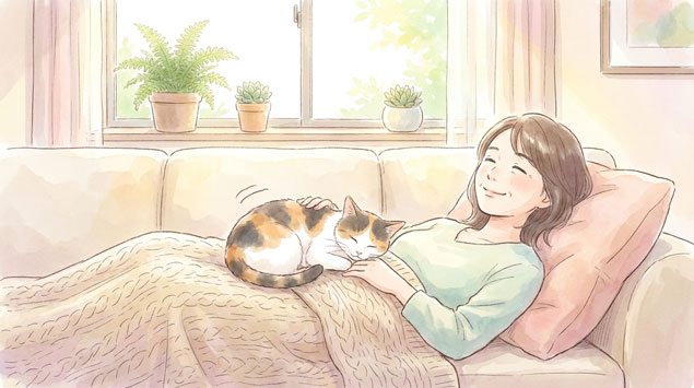 A. 本当です。ネコと触れ合うことで「オキシトシン(幸せホルモン)」が分泌され、ストレスホルモン「コルチゾール」が下がるという研究があります。ネコとの時間は、立派なリラックス法のひとつといえます。