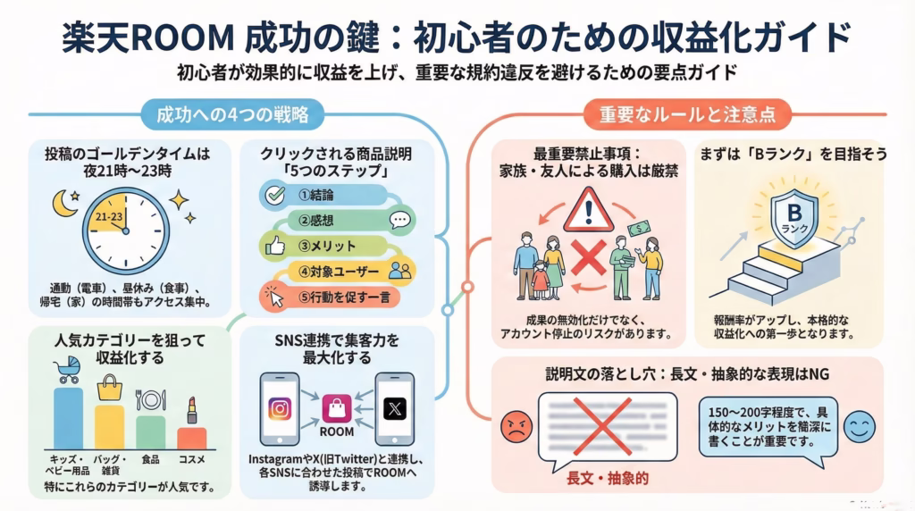 楽天ROOMで月万円を稼ぐという目標は、運ではなく戦略の積み重ねです。