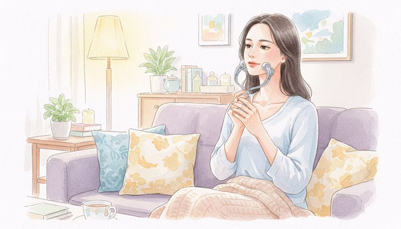 使う前に顔から首筋、デコルテまで軽くほぐしておくと、より気持ちよくなります。