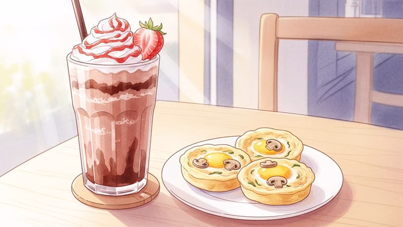 甘いドリンクには、塩気のあるフードが最高に合います。トリュフの香りとマッシュルームの旨味が詰まったエッグバイツは、ちょっとしたランチ代わりにもなりますし、甘くなった口の中をリセットしてくれます。