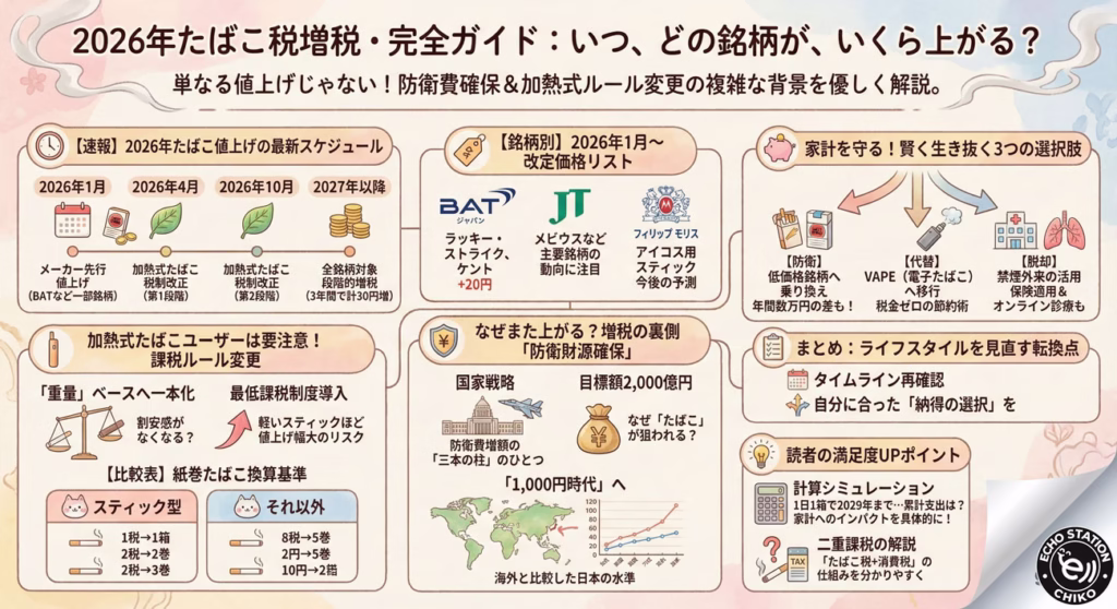 2026年のたばこ増税まとめ|加熱式の新課税(4月/10月)で何が変わる?買いだめ時期も