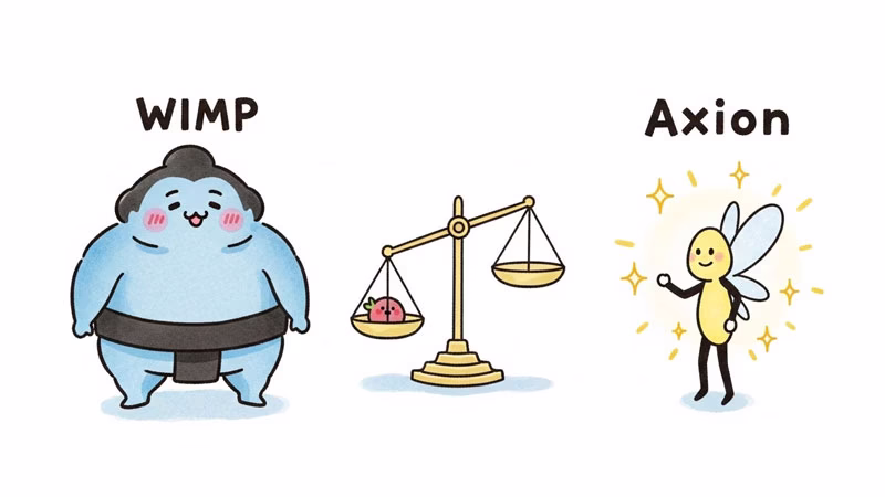 ここでは代表的な2つの候補、WIMP(ウィンプ)とアクシオンについて、わかりやすく比較してみましょう。