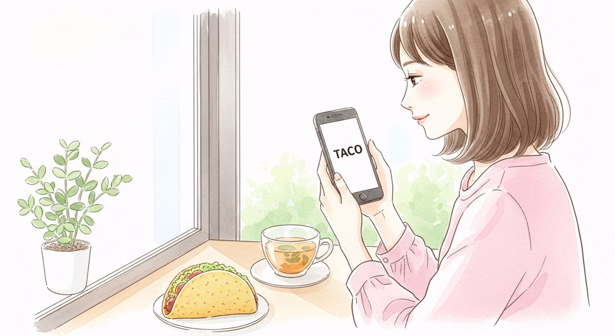 投資の世界やビジネスの会話で出てくる「TACO」は、実は食べ物のことではないんです。