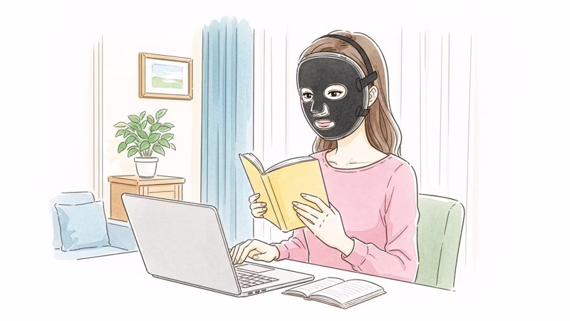 この美顔器のすごいところは、顔に装着してスイッチを入れたら、あとは「何もしなくていい」こと。