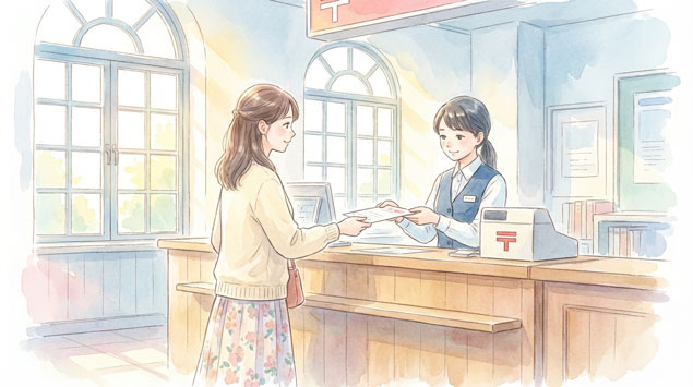オンラインが苦手な場合は、新住所が記載された運転免許証やマイナンバーカードを持って、郵便局の窓口でも手続きできるから安心してね 。